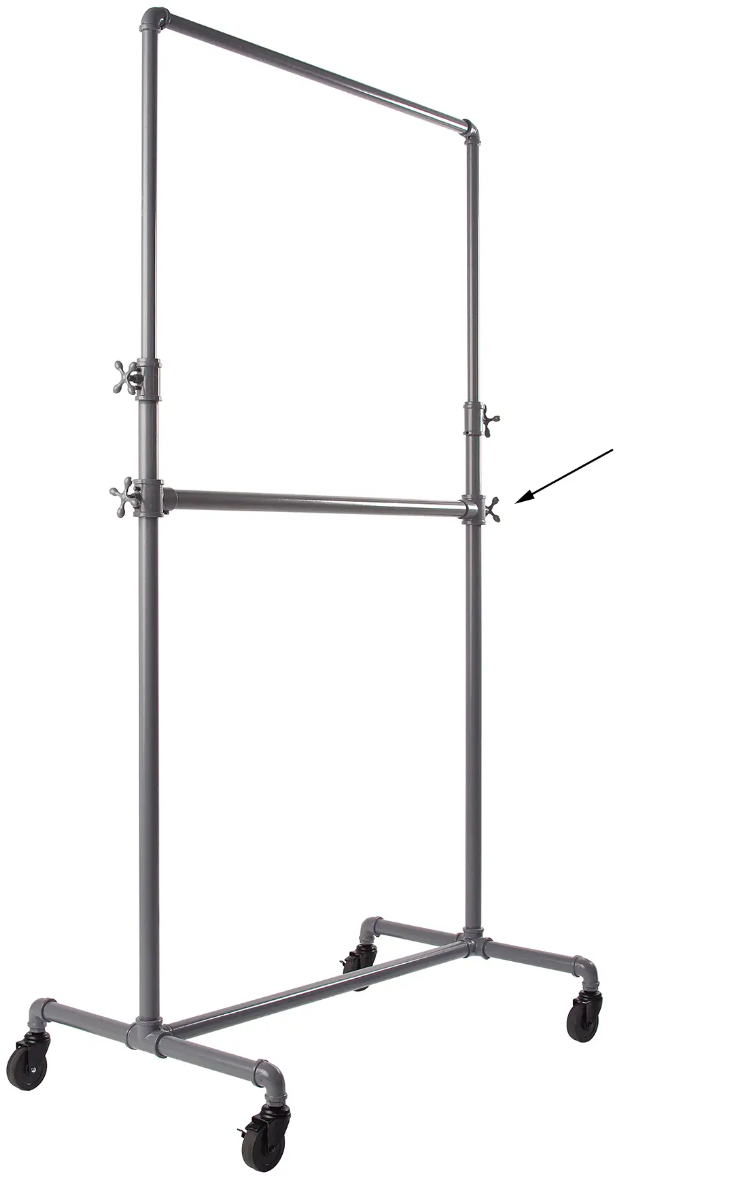 The Add-On Hangbar will fit this collection’s adjustable Pipeline racks with a 41″-wide base.Ā This hangbar is constructed from heavy-duty 1¼” diameter plumbing pipe and features an attractive anthracite gray epoxy finish that resists chipping and scratches.