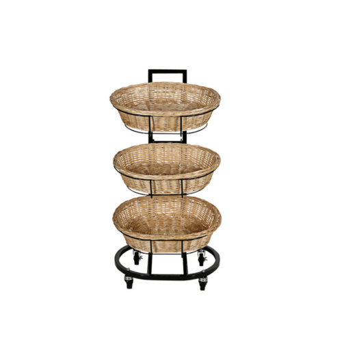Our 3 Tier Basket Merchandiser offers 3 extra large willow baskets perfect for baked goods, fruits and vegetables or bulk sale items!